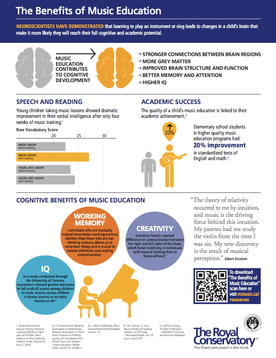Even before the current administration’s crackdown on education, it wasn’t unusual to see band directors or other music educators arguing for, if not more funding for school music programs, then at least no more cuts. Often, music education supporters trot out a graphic like this in support of such arguments: